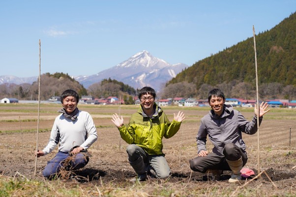 「猪苗代漆林計画」を始めたのは、福島県・会津地域に住んでいる、漆器プロデューサーの貝沼航(かいぬま・わたる)さん、漆器の塗師であり漆掻き職人である平井岳(ひらい・がく)さん、お米と伝統野菜の農家である土屋勇輝(つちや・ゆうき)さん、自然学校を運営する和田祐樹(わだ・ゆうき)さんの4人。