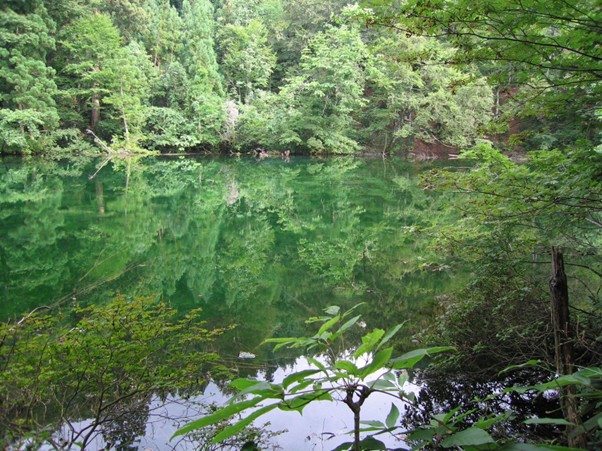 この池は、40年前に降った雨や雪が森林である山の地中を通り、ろ過されたのち、池の底や側から湧き続ける毎分30トンもの湧水でできています。渇水で周囲の集落の田畑が取水制限になる中でも、名水百選に選ばれる龍ヶ窪の水を引く主に2つの集落は水の利用に困りません。他所から移りこの水で生活していると、水のおいしさと水による豊かさ、冬の凍ることのない水の大事さを実感します。